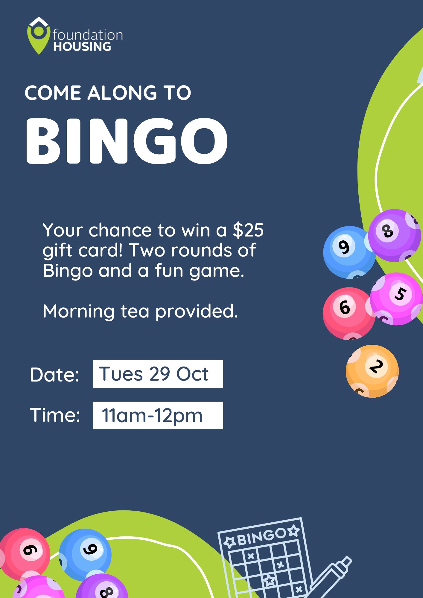 Join us for an hour of fun and connection at this bingo game and a fun activity. Get connected and play two rounds of bingo with the chance to win a $25 gift voucher.